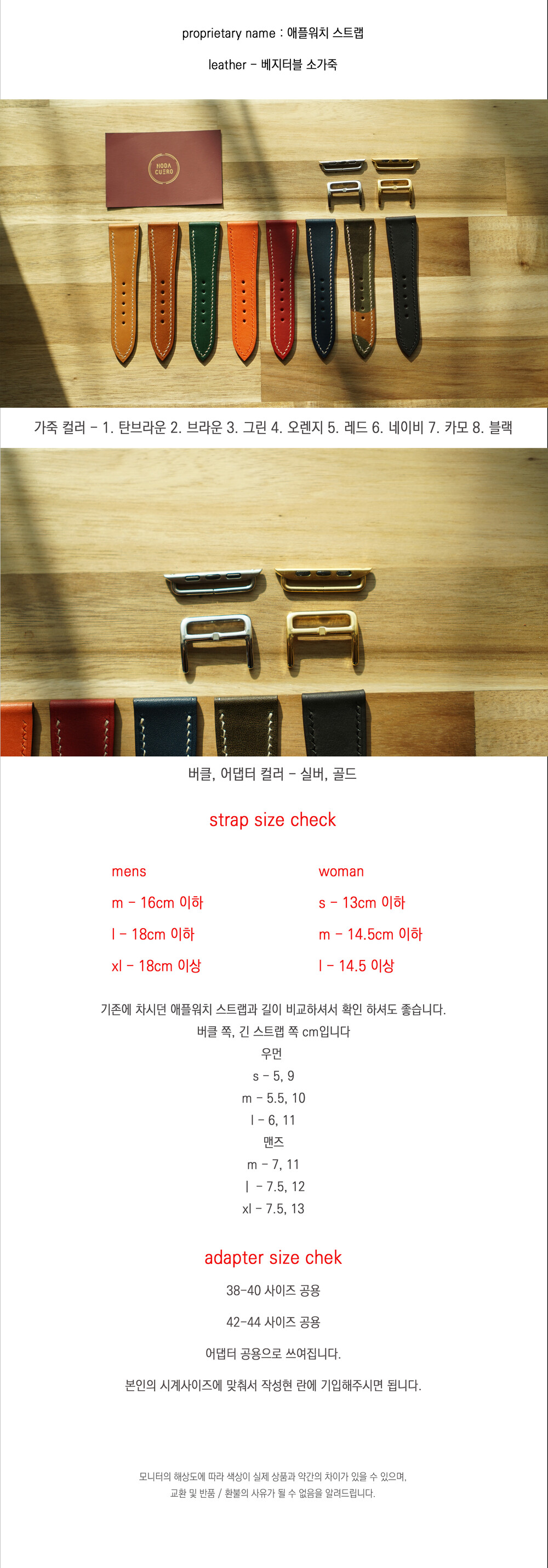 가죽컬러, 시계 사이즈 & 스트랩 사이즈 기입 부탁 드립니다.