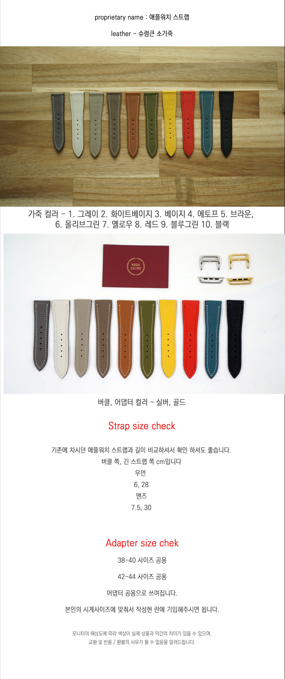가죽컬러, 시계 사이즈 기입 부탁 드립니다.